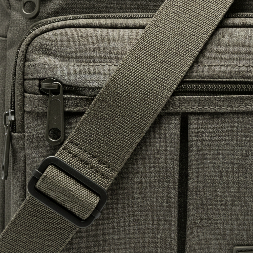 Crafted from high-quality, water-resistant nylon with smooth, reliable metal zippers and a comfortable woven strap.