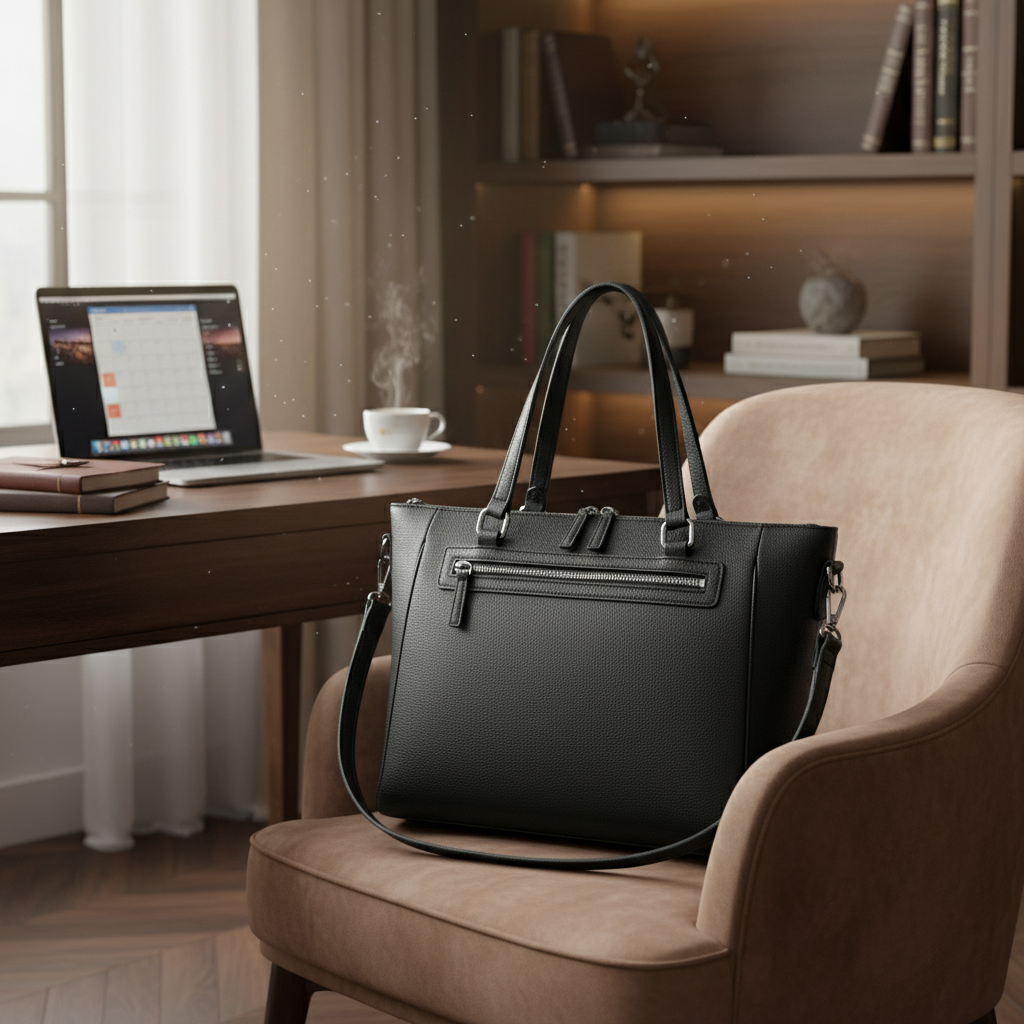 Elevate your daily commute with the moventira Professional Work Tote, the ultimate companion for the modern working woman. Meticulously designed for both style and function, this tote bag features a secure full-length zipper closure to keep your essentials safe. It’s the sophisticated, versatile bag you’ve been searching for to seamlessly transition from the office to after-work engagements.
